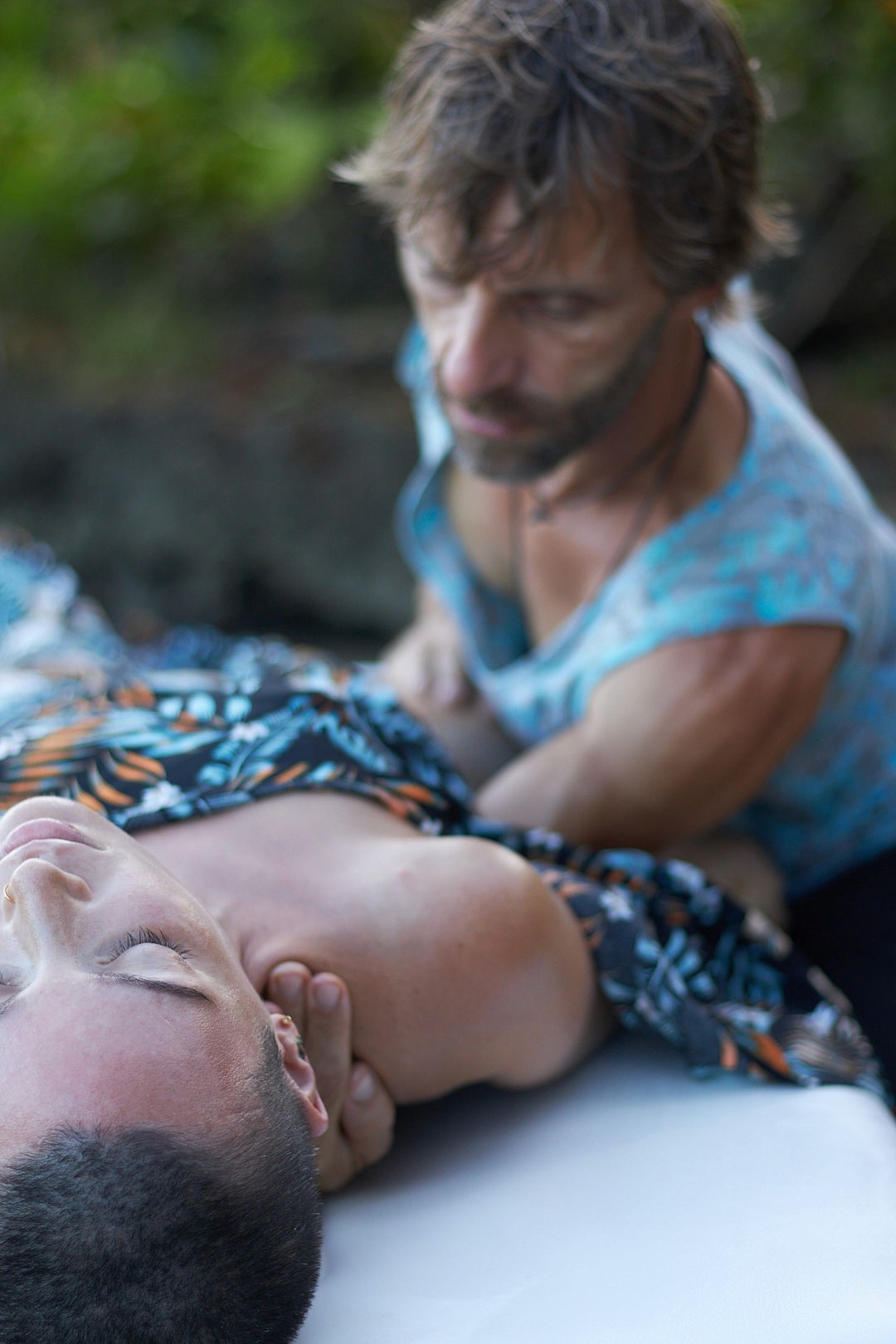It took place in a beautiful setting, surrounded by nature. Floral decorations had been arranged beforehand, and during the massage, atmospheric Hawaiian music played in the background.